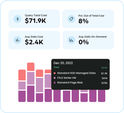 - IaaS spend analysis: Provides visibility into Azure and multi-cloud costs by department, team, or business unit, helping avoid overspending and surprise bills.