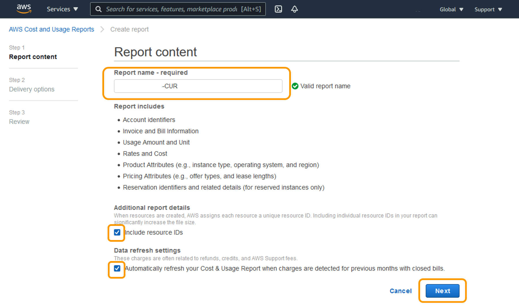 Here is the detailed step-by-step process of how to generate and save a CUR from AWS.
