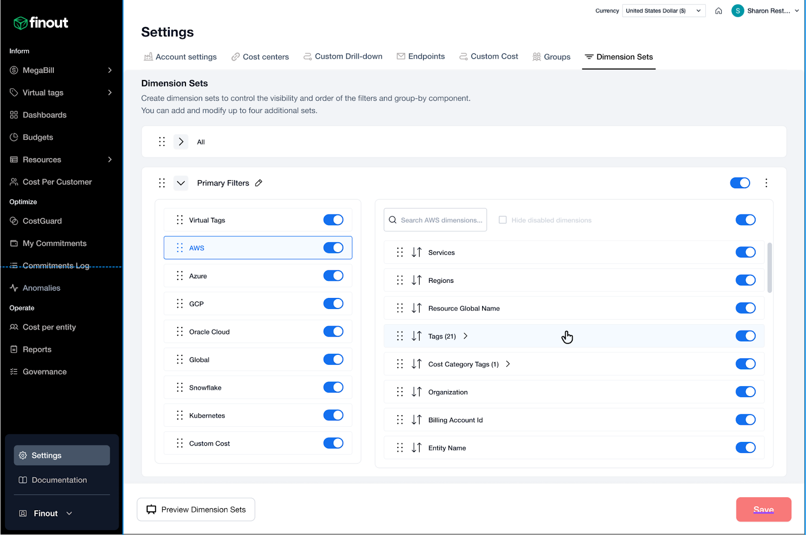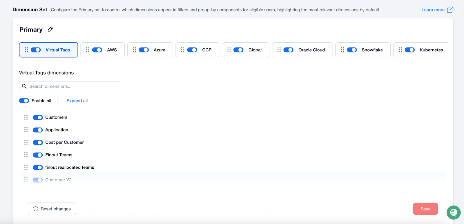 - FinOps control: FinOps teams would curate the “primary” Dimension Set - the greatest hits album of dimensions—deciding what shows up and in what order.