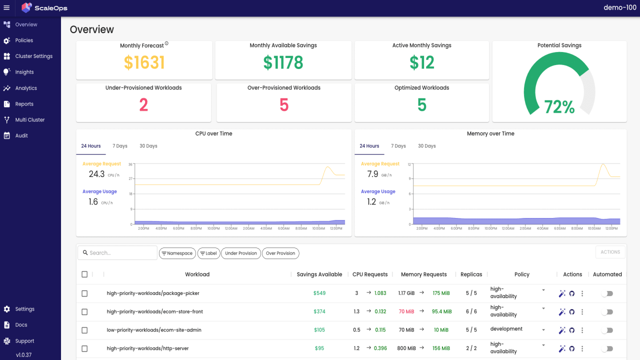 - Hands-free operation: Eliminates manual monitoring and adjustment of cloud resources. This minimizes the workload for engineering teams, freeing them up to focus on core development activities without worrying about cloud cost management.